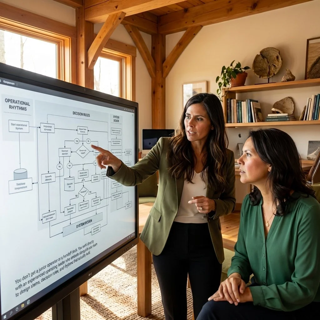 You don’t get a junior operator or a handoff deck. You work directly with an experienced operating leader who embeds alongside your team to design systems, decision rules, and rhythms that actually hold.